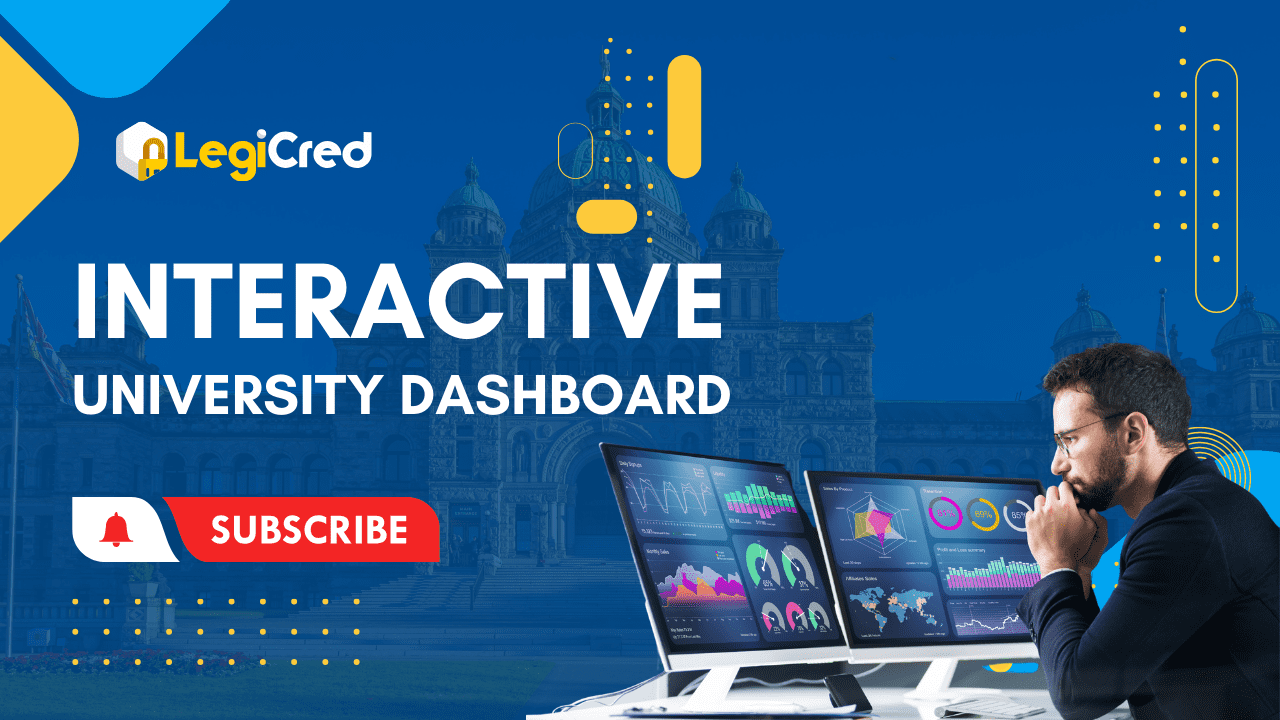 Discover LegiCred’s custom dashboard for universities, featuring advanced analytics. Watch how universities can effortlessly track their document issuance, verification, and social media shares.